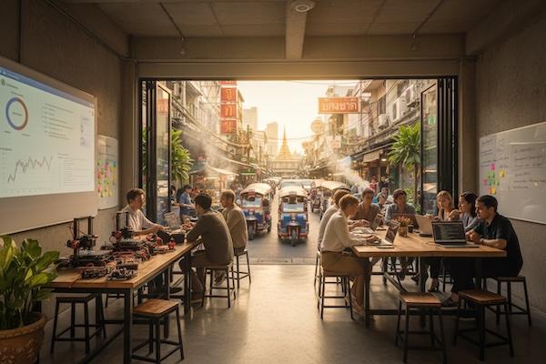 In Thailand haben sich Bangkok und Chiang Mai als die zwei komplementären Standorte herausgebildet. Die Hauptstadt als das Drehkreuz für Skalierung, Corporate‑Innovationen und Finanzierungen, während Chiang Mai sich als freigeistiger talent‑ und Kreativ‑Tech‑Standort auszeichnet.
